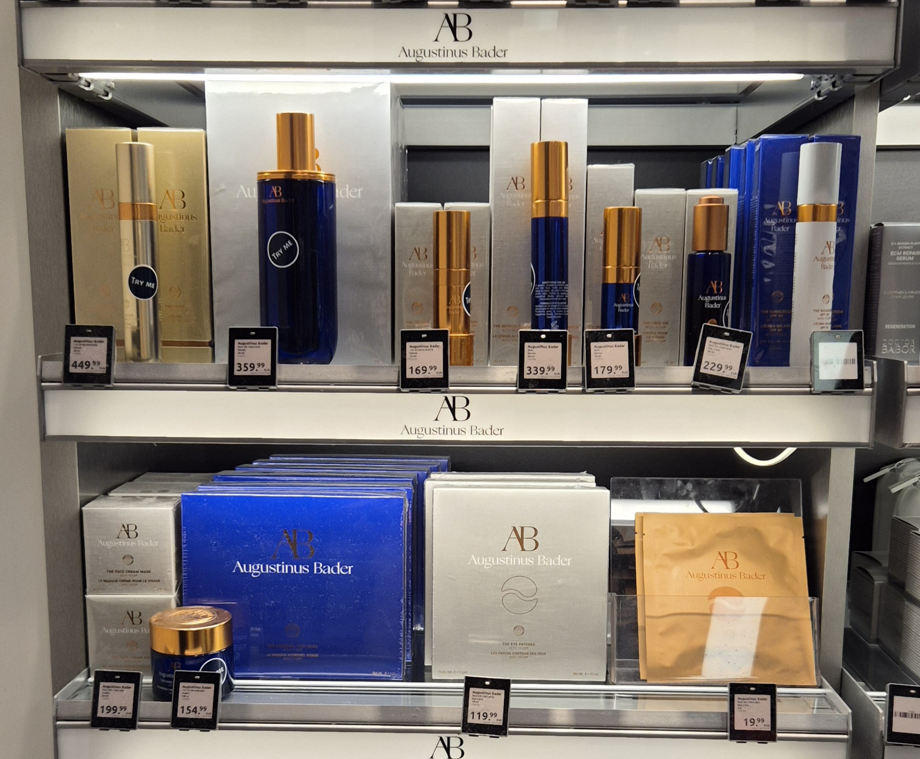 というわけで、チューリッヒとウィーンの両空港を見て、アウグスティヌス・バーダーはドイツ語圏では空港でも販売するくらい人気のブランドのようです。ただ、どちらの空港も例えばヴィクトリア・ベッカムとコラボで出しているコンシーラー等は見なかったので、スキンケアのみの取り扱いのようです。リップケアアイテムはありました。